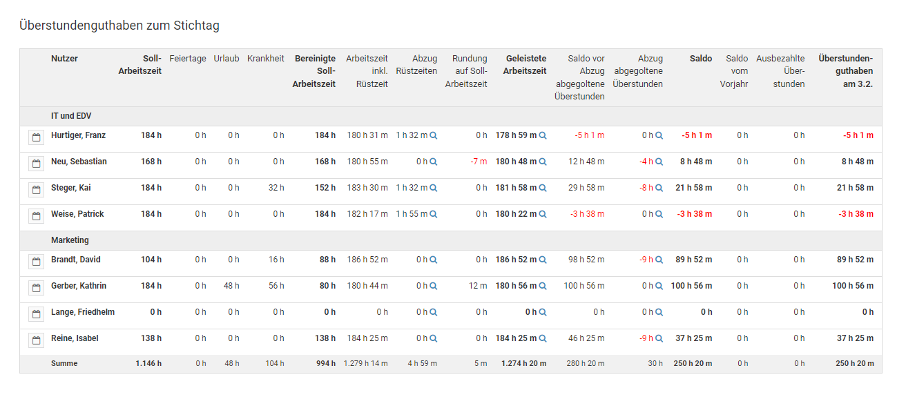 Urlaub und Krankheit werden automatisch im Arbeitszeitkonto abgezogen. Bei allen anderen Abwesenheitstypen haben Sie zwei Möglichkeiten: