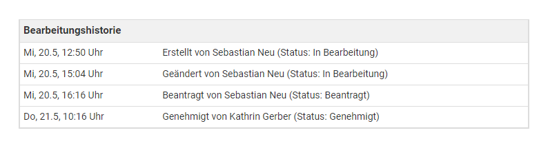 Genehmigte Urlaubsanträge können nachträglich nicht geändert werden, damit Anträge nicht nachträglich manipuliert werden können und aus Gründen der Revisionssicherheit.