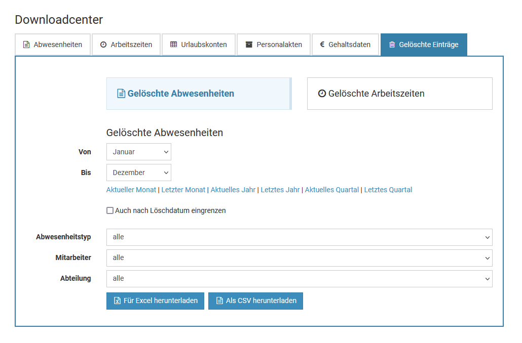 Abwesenheit löschen, Mitarbeiter-Nutzer