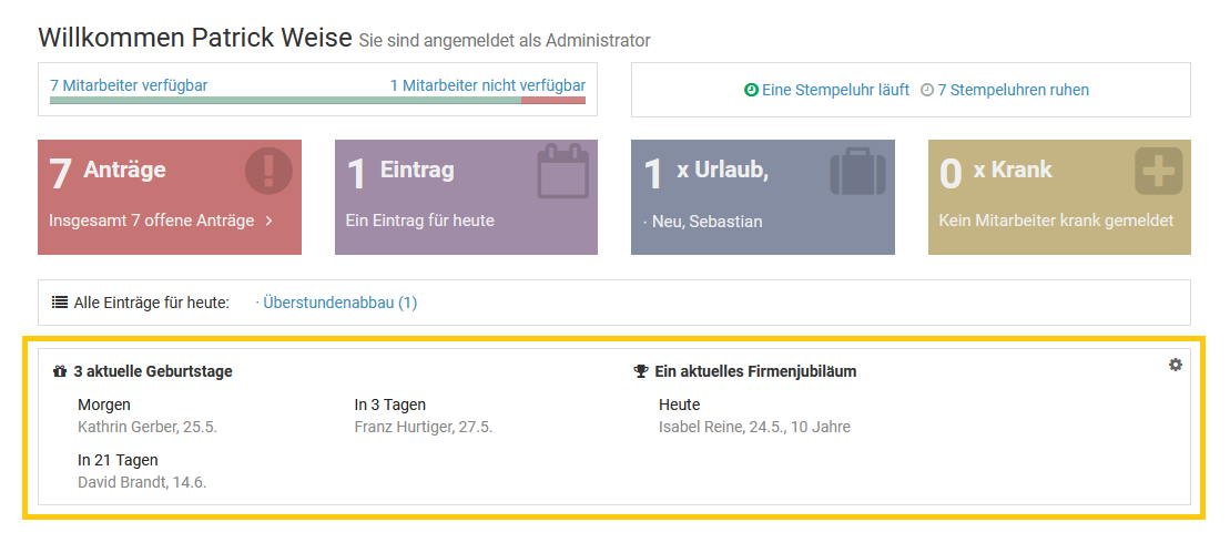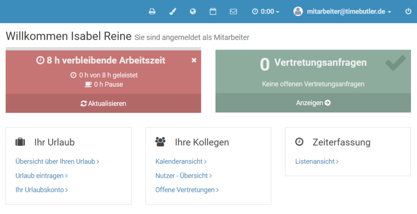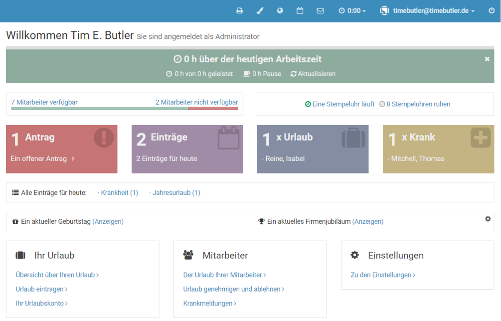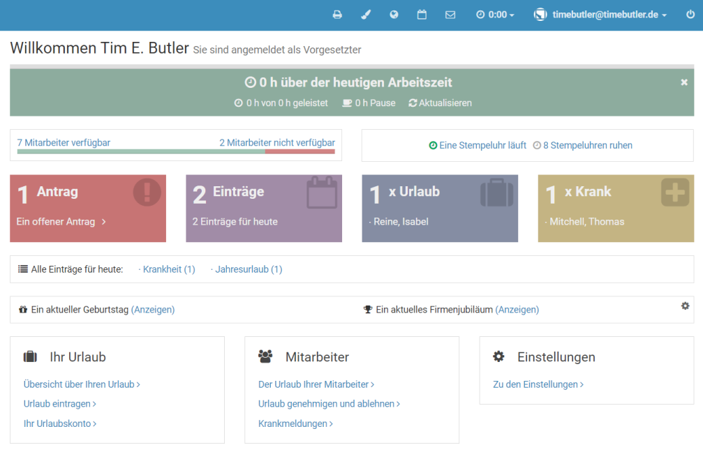 Melden Sie sich als Admin am Timebutler an - nur Admins haben die Berechtigung, diese Änderung vorzunehmen. Falls Sie keinen Admin-Nutzer im Timebutler haben, können Sie einen Admin darum bitten.