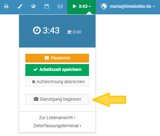 Mitarbeiter-Nutzer melden sich am Timebutler an und klicken links auf "