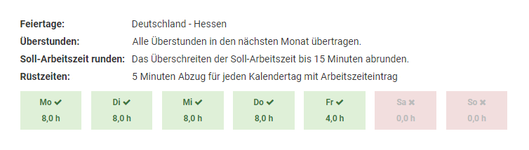 Ein Admin kann für jeden Abwesenheitstyp individuell einstellen, dass dieser die Soll-Arbeitszeit reduziert.